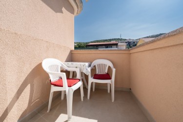 Spavaća soba sa dva ležaja, dnevna soba, kuhinja, kupaonica, balkon sa pogledom na more, klima uređaj, sat/tv, WiFi, aparat za kavu.